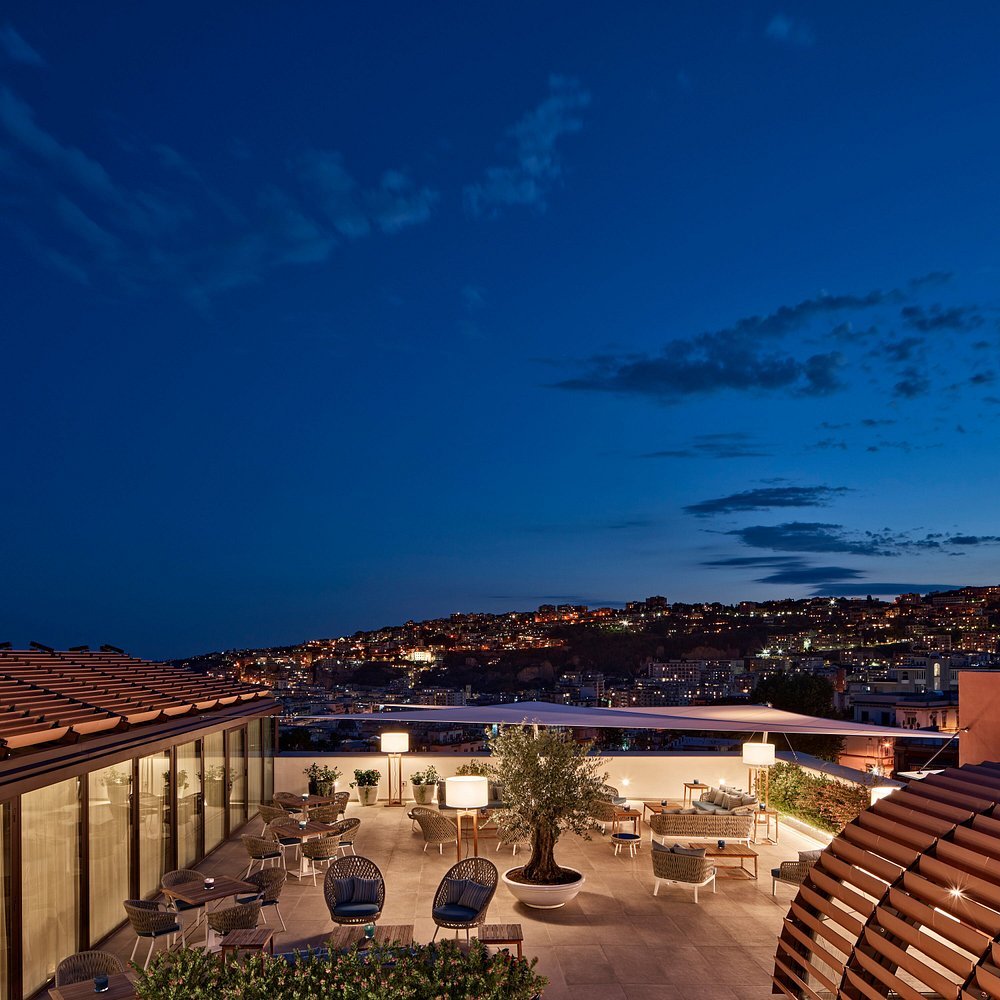 De Bonart Naples sits in an elevated position above the city. The setting offers wide views across Naples and the bay. Rooms feel modern, elegant, and well designed. As a result, the hotel provides a calm and refined escape from the busy streets below.