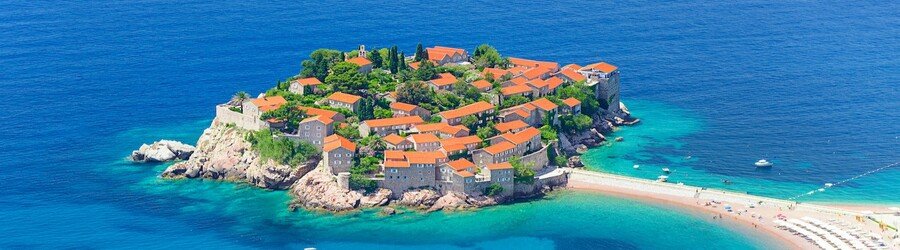 Sveti Stefan, Montenegro: This beach faces a small historic island and offers an iconic view. Meanwhile, shallow water suits families, and photographers love the setting.