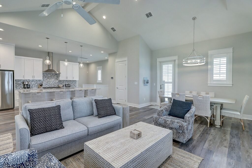 Cinnamon Shore feels like a small beach village. Guests can book condos or large beach homes with private balconies and bright coastal dรฉcor. Many rentals include golf carts, so getting to the beach is quick and easy. In addition, the property offers several pools, landscaped paths, and on-site dining. Because everything is walkable, it works well for families and groups who want both space and convenience.