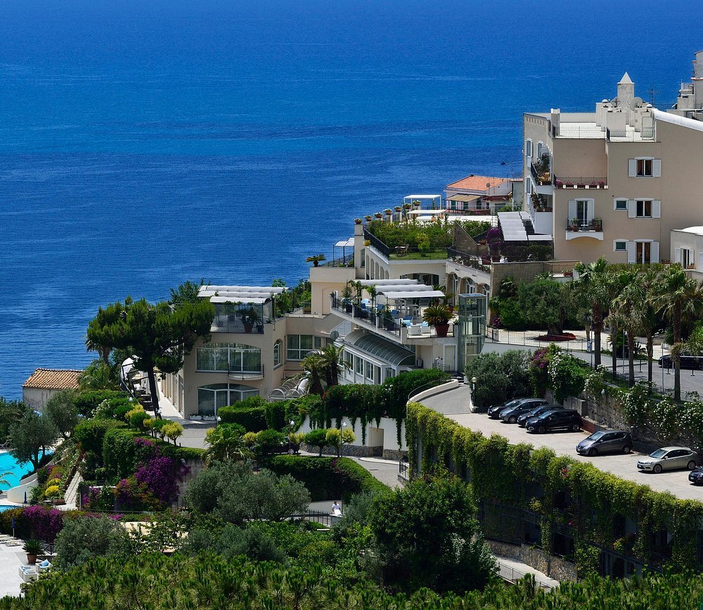 Hotel Raito is just outside Salerno in Vietri sul Mare. It offers modern luxury with wide coastal views. The hotel includes a pool, spa facilities, and bright rooms facing the sea. As a result, it’s a strong choice for travelers wanting comfort near the city.