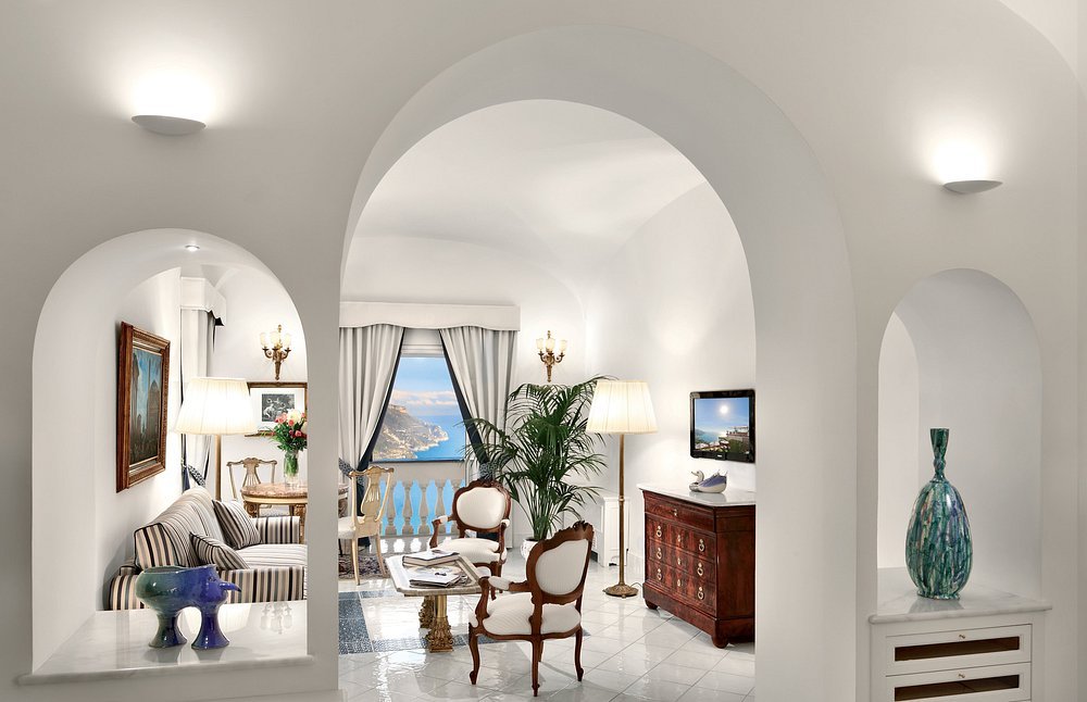This luxury hotel is located just west of Salerno. It sits inside a restored hilltop convent in Amalfi. So, the setting offers sweeping sea views, a large pool, as well as a full spa. Because of its quiet location and elevated position, the hotel feels peaceful while still close to coastal towns.