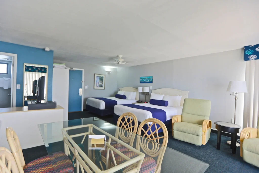 Upscale all-suite beachfront resort featuring spacious gulf-view rooms, kitchens, and a polished on-site restaurant.