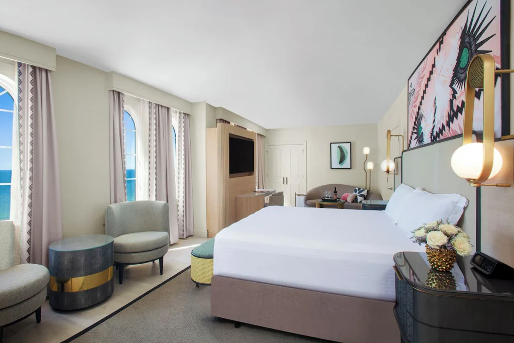 Known as the iconic โPink Palace,โ The Don CeSar blends historic elegance with modern coastal luxury. Guests enjoy beautifully styled rooms. As well as a full-service spa, beachfront dining, and two heated pools overlooking the Gulf. Its landmark architecture and prime St Pete Beach location make it one of the most memorable luxury stays in Florida.