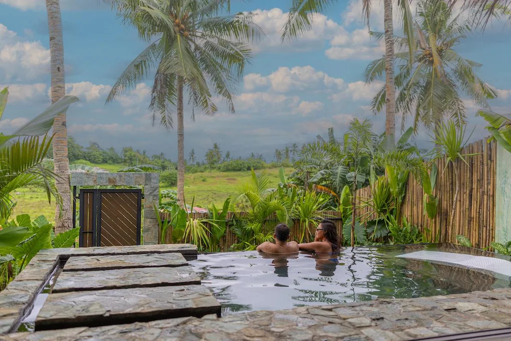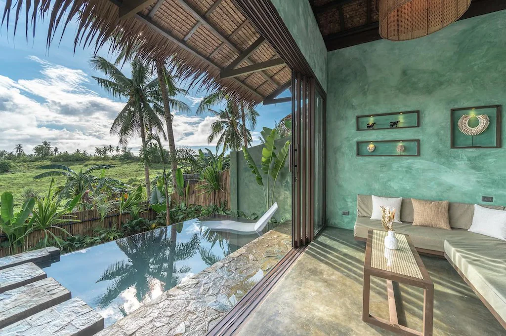 Tanaw Villas pairs modern design with ocean views from a cliffside setting. Each villa feels private and open, with infinity pools and simple, stylish interiors. Nothing feels overdone. The setting stays quiet as well as scenic. So it’s a great choice for travelers who want beautiful views and relaxed evenings at sunset.
